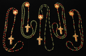 The Holy Father John Paul II with the Apostolic Letter ROSARIUM VIRGINIS MARIAE of 10/16/2002 has added 5 new mysteries of the Rosary: The Mysteries of the Light. The whole Rosary is composed of twenty decades. Each decade is recited in honor of a mystery in Our Lord's Life and that of his Blessed Mother. It is customary to recite five decades at a time while meditating on one set of mysteries. The decades may be separated, if the entire chaplet is completed on the same day. Each Mystery may be meditate "bead by bead" for every Hail Mary of the decade.